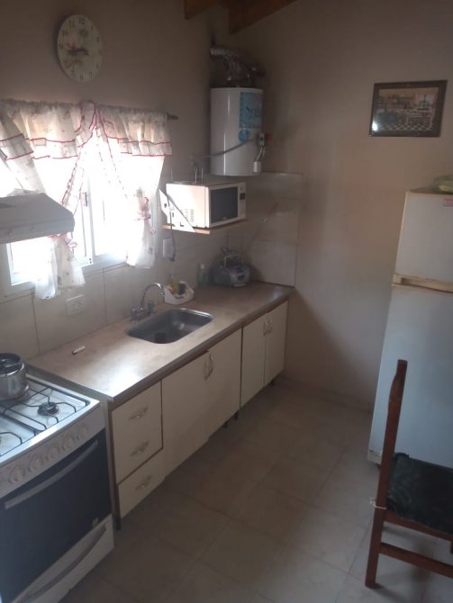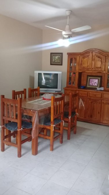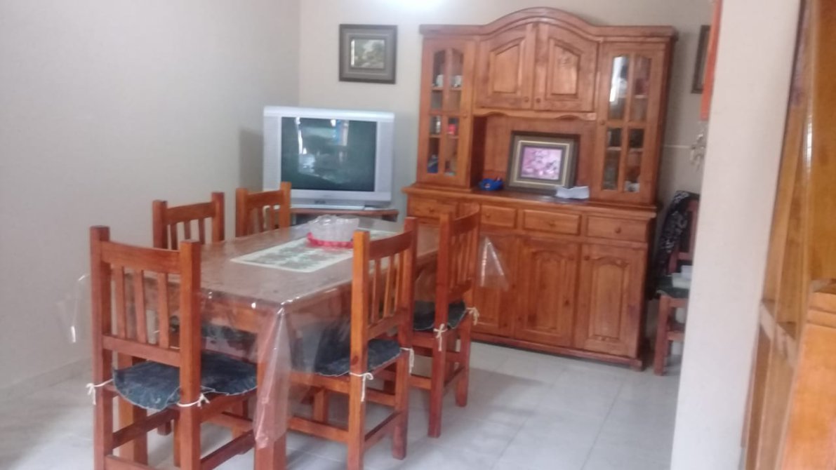 COMODIDADES: ESPACIO PARA AUTO, COCINA-COMEDOR CON VENTILADOR DE TECHO, BAÑO COMPLETO, UN DORMITORIO MATRIMONIAL CON VENTILADOR DE TECHO EN PLANTA BAJA Y PATIO CON PARRILLA Y PILETA LAVADERO. EN PLANTA ALTA UN DORMITORIO CON UNA CAMA CUCHETA Y UNA CAMA SIMPLE CON UN VENTILADOR DE PIE. EL TERCER DORMITORIO CON UN SILLON FUNTON CON VENTILADOR DE TECHO.