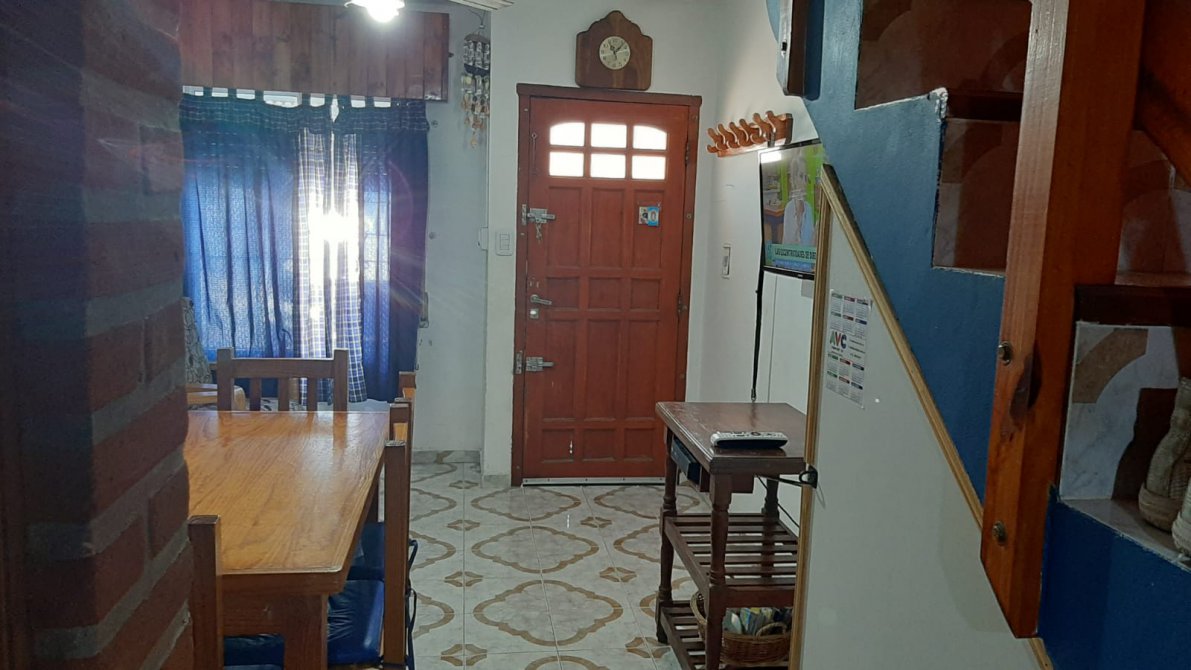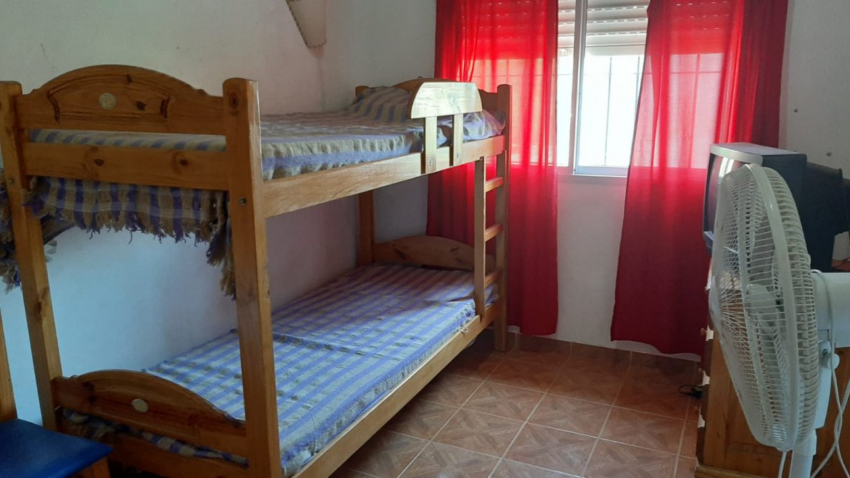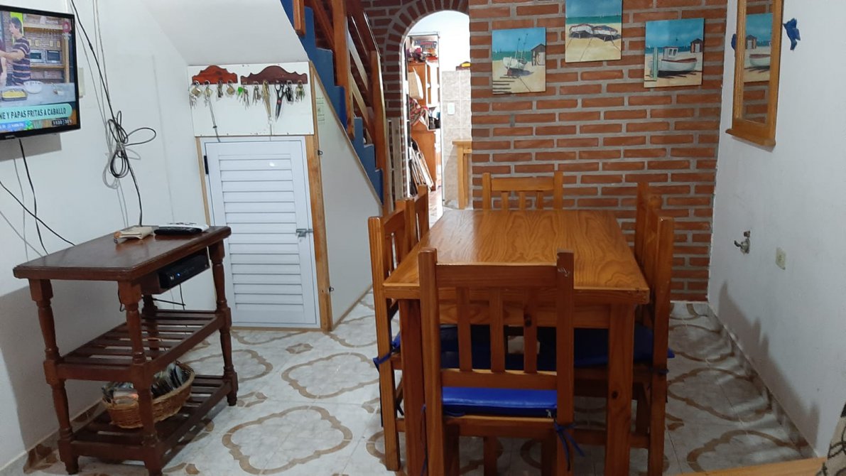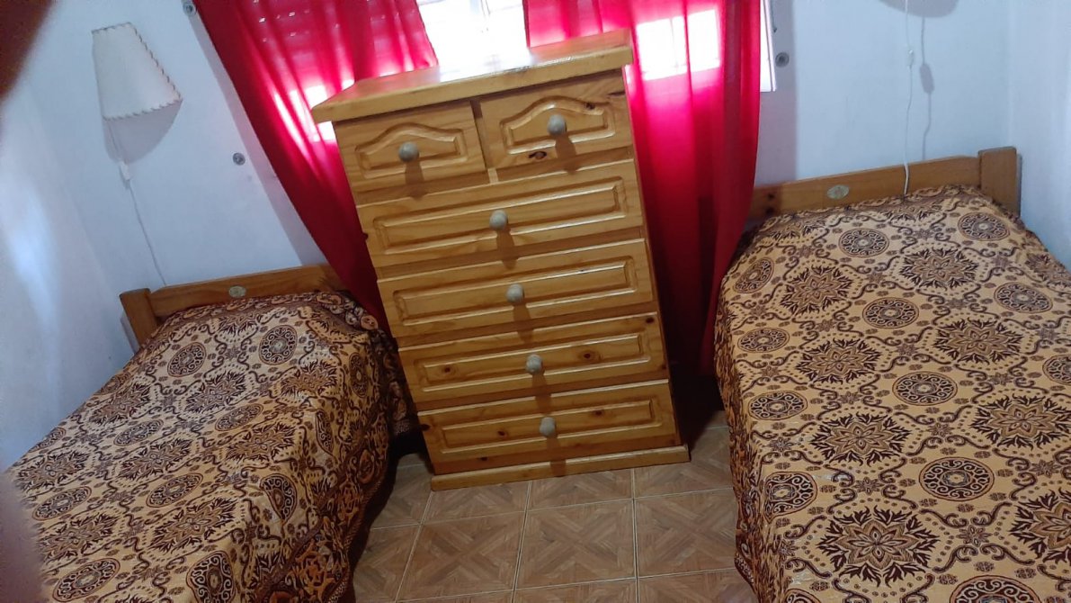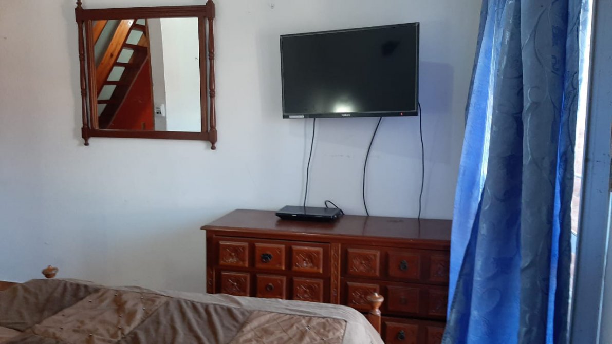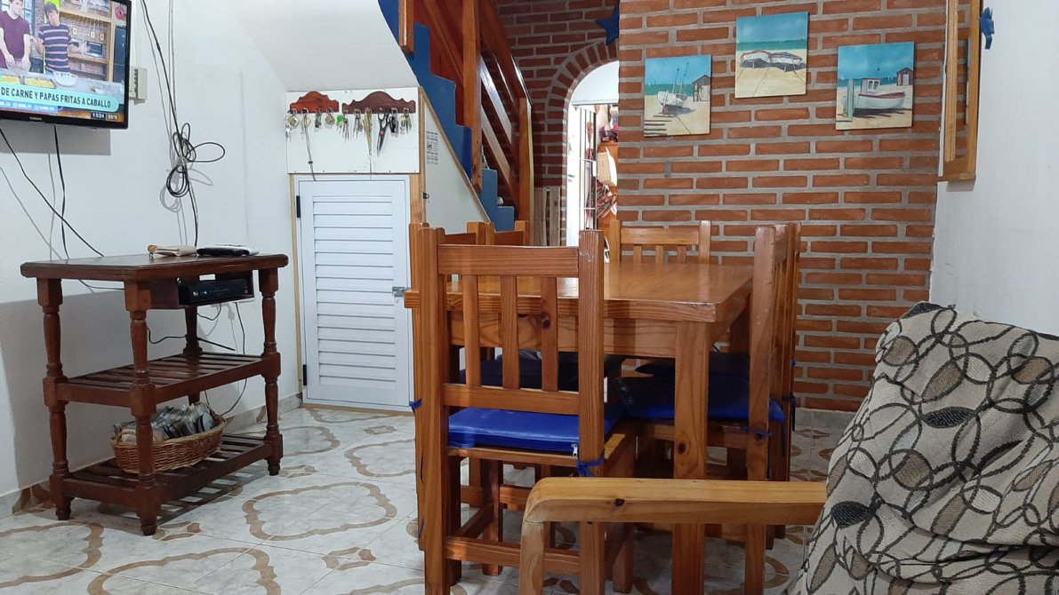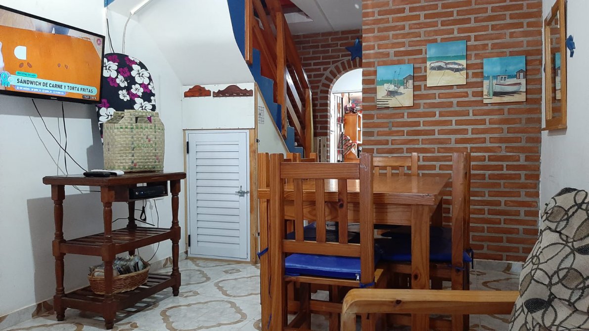 COMODIDADES: ESPACIO PARA AUTO, COCINA-COMEDOR, BAÑO EN PLANTA BAJA CON INODORO Y DUCHA, QUINCHO CON PARRILLA TECHADO, PATIO AMPLIO. EN PLANTA ALTA UN DORMITORIO MATRIMONIAL, UN SEGUNDO DORMITORIO CON DOS CAMAS SIMPLES, UN TERCER DORMITORIO CON UNA CAMA CUCHETA, BAÑO COMPLETO Y UN CUARTO DORMITORIO EN ALTILLO CON UNA CAMA SIMPLE.